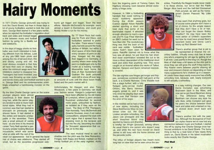 The influx of foreign players has meant more long hair on view than we’ve seen since the seventies. Thankfully the Baggio braids never made it to these shores, but we’ve had the Patrik Berger Alice band and the half-tied Emmanuel Petit ponytail, as well as the homegrown Darren Peacock ‘My Little Pony’.