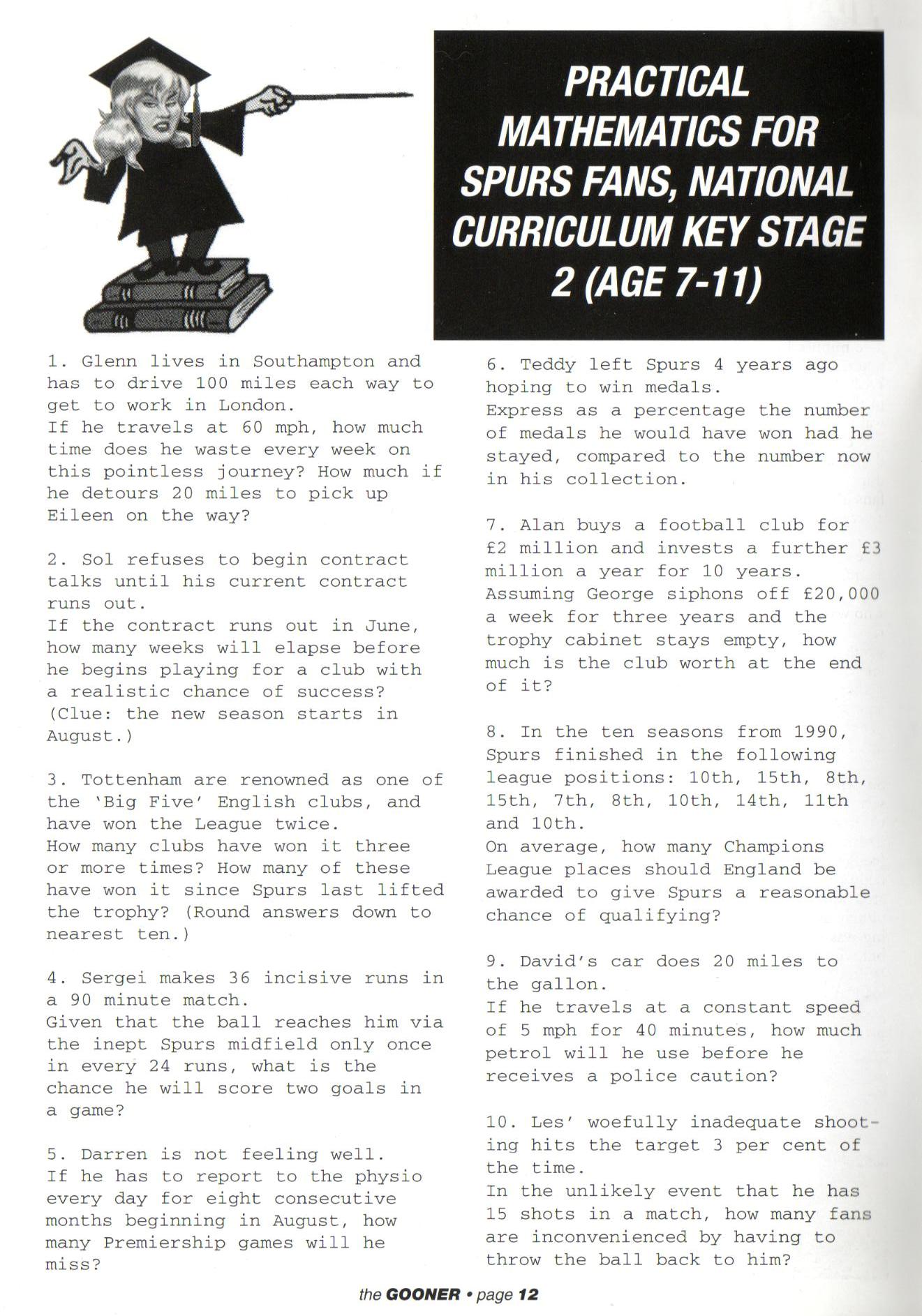 Practical Mathematics for Spurs fans, National Curriculum Key Stage 2 (age 7-11)