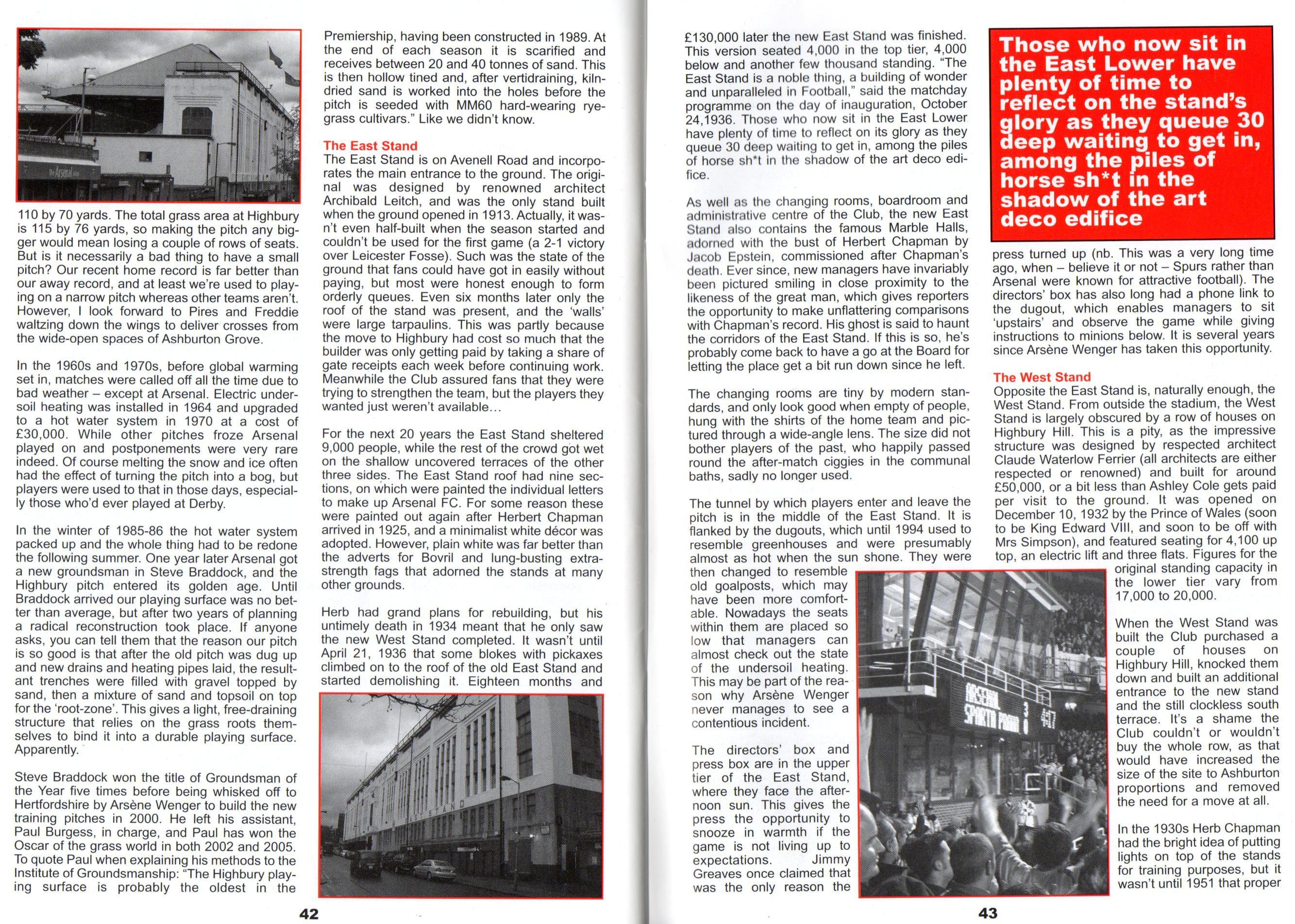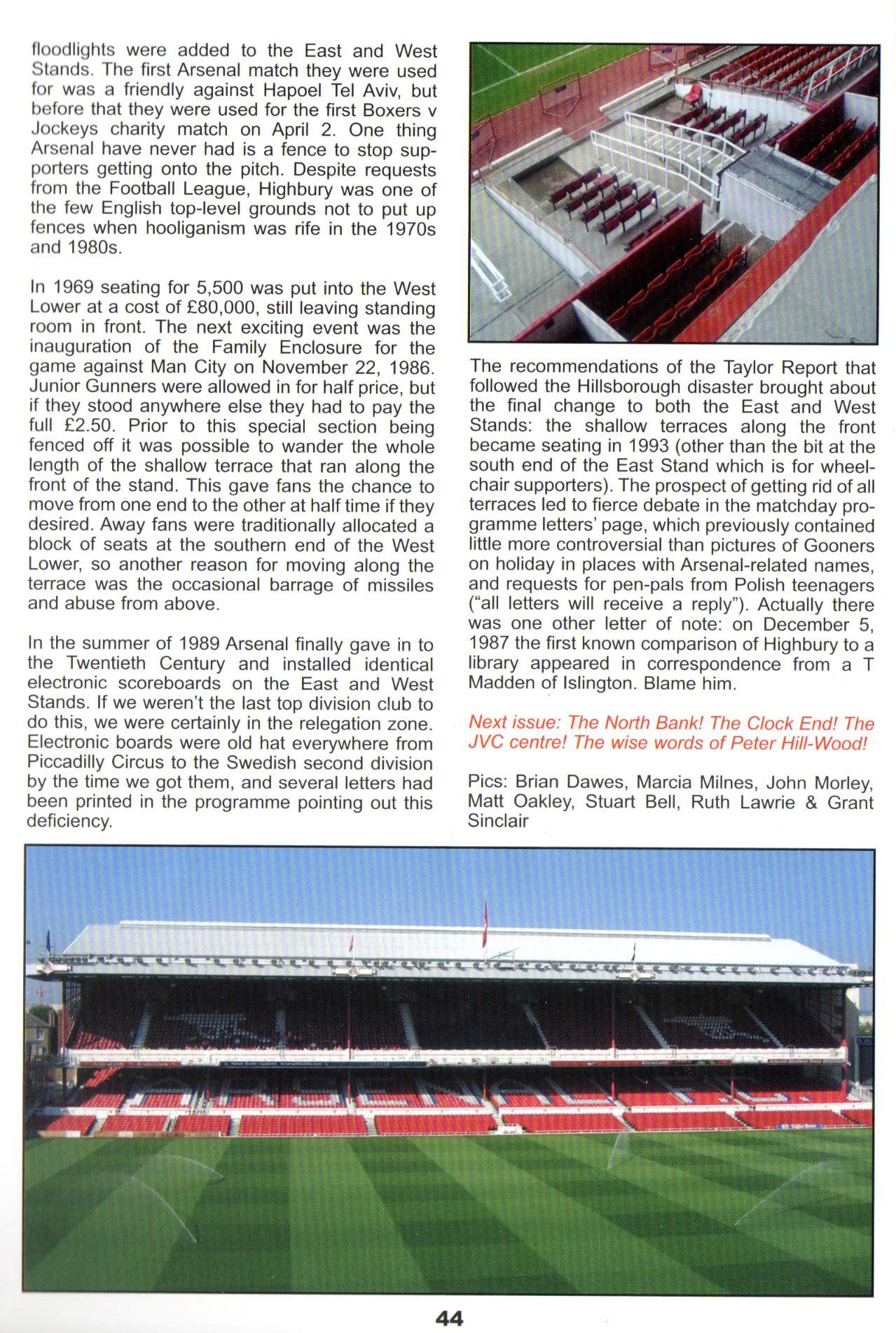 Next issue: The North Bank! The Clock End! The JVC centre! The wise words of Peter Hill-Wood!