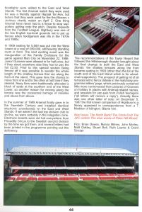 In the winter of 1985-86 the hot water system packed up and the whole thing had to be redone the following summer. One year later Arsenal got a new groundsman in Steve Braddock, and the Highbury pitch entered its golden age. Until Braddock arrived our playing surface was no better than average, but after two years of planning a radical reconstruction took place. If anyone asks, you can tell them that the reason our pitch is so good is that after the old pitch was dug up and new drains and heating pipes laid, the resultant trenches were filled with gravel topped by sand, then a mixture of sand and topsoil on top for the ‘root-zone’. This gives a light, free-draining structure that relies on the grass roots themselves to bind it into a durable playing surface. Apparently.