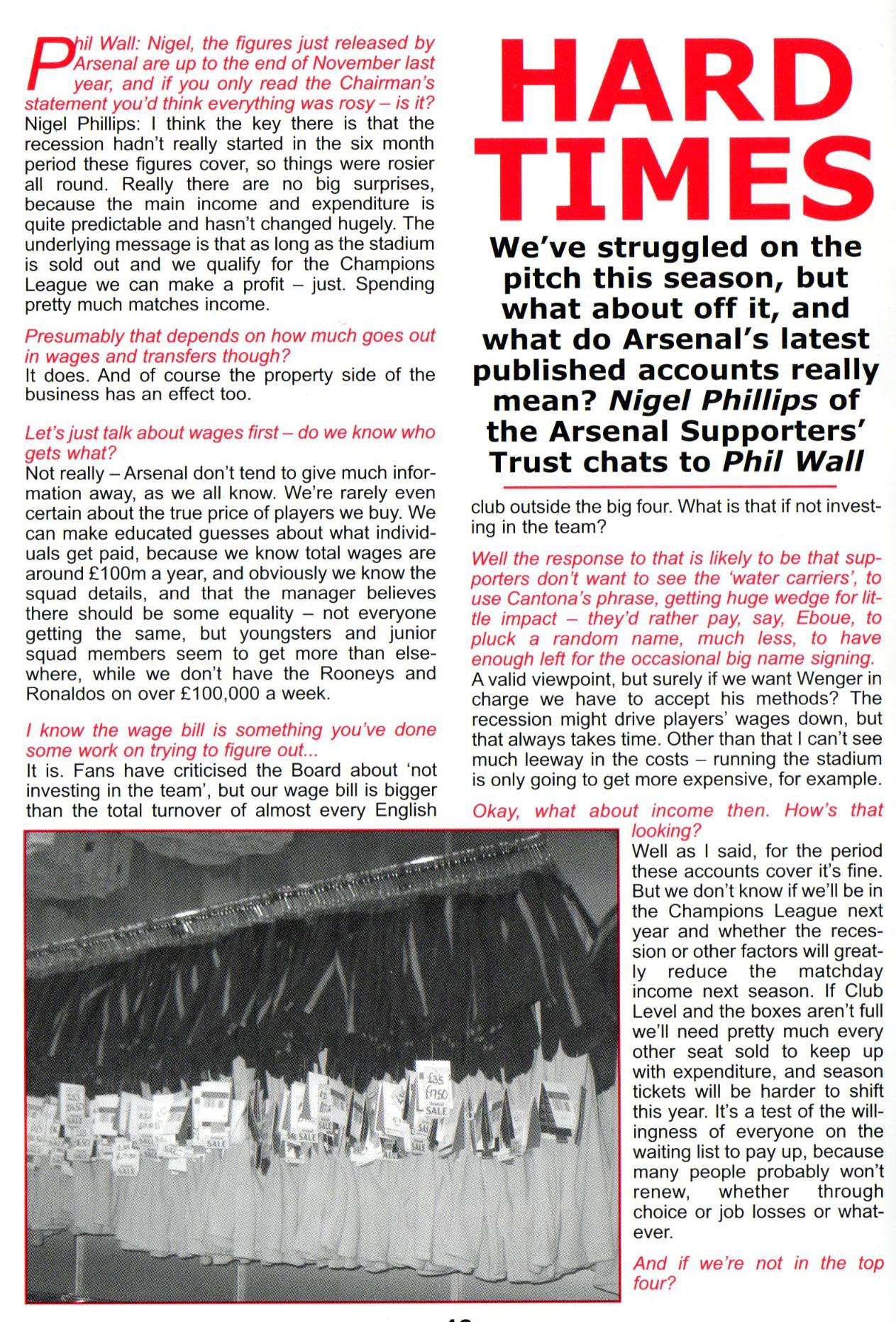 NP: Exactly. However, the point about income is that next season will be during the recession – times are getting tougher, and Arsenal need to sell seats renewal season tickets this summer.