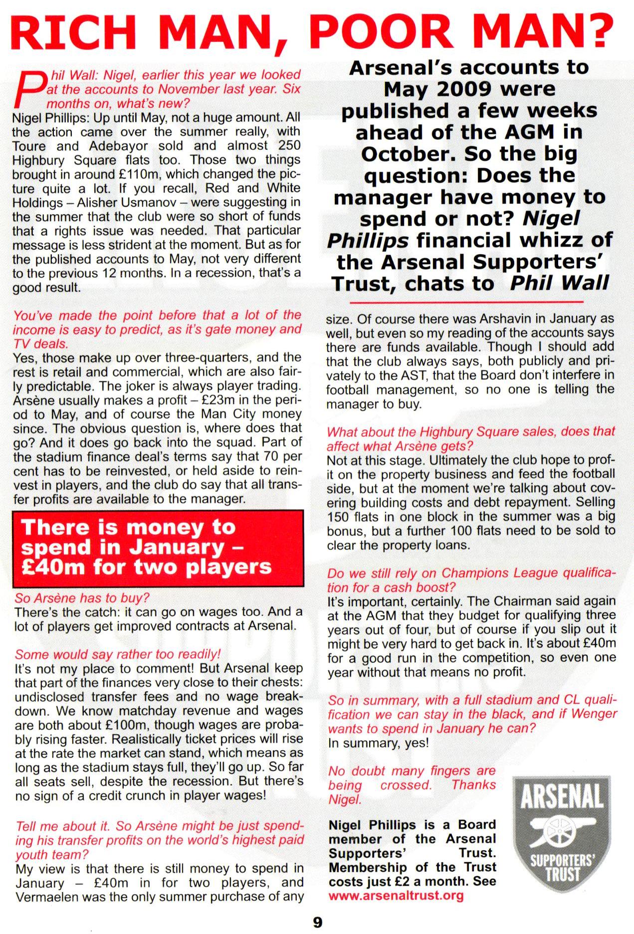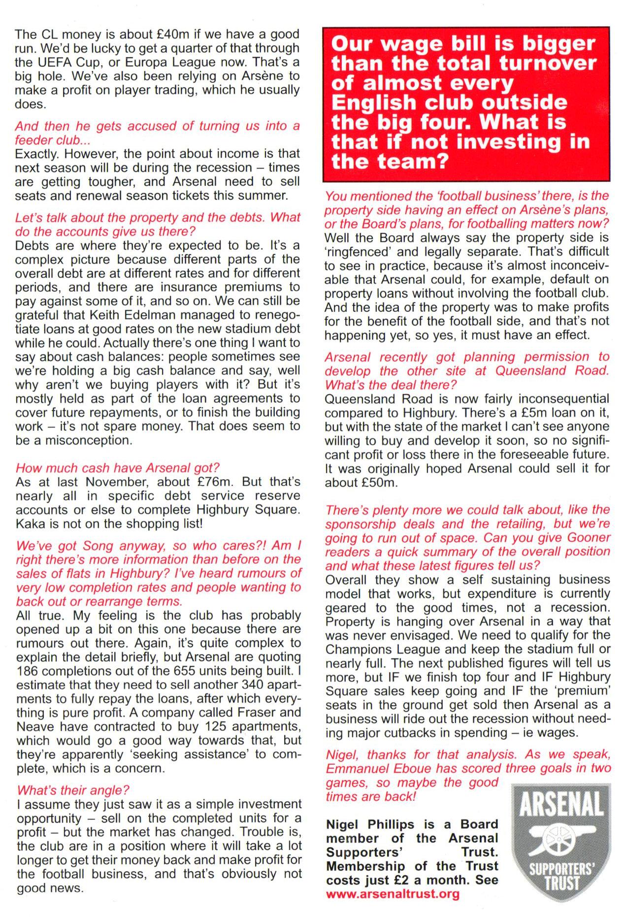 Nigel Phillips is a Board member of the Arsenal Supporters’ Trust. Membership of the Trust costs just £2 a month. See www.arsenaltrust.org