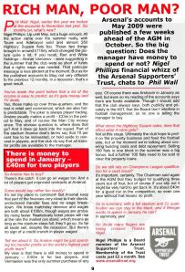 NP: Overall they show a self-sustaining business model that works, but expenditure is currently geared to the good times, not a recession. Property is hanging over Arsenal in a way that was never envisaged. We need to qualify for the Champions League and keep the stadium full or nearly full. The next published figures will tell us more, but IF we finish top four and IF Highbury Square sales keep going and IF the ‘premium’ seats in the ground get sold then Arsenal as a business will ride out the recession without needing major cutbacks in spending – ie wages.