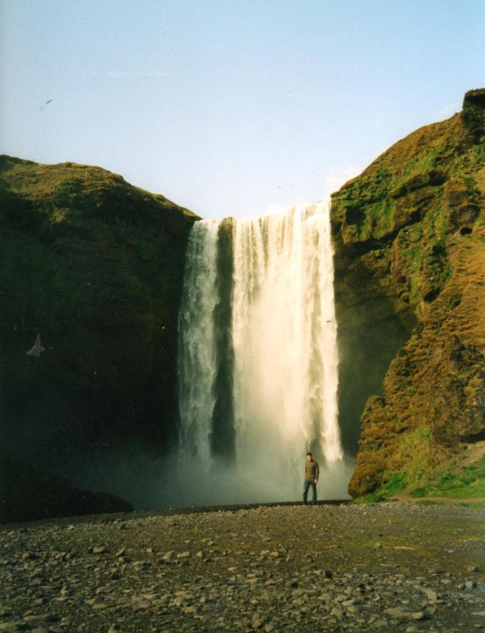 Also, here’s a picture of me and a waterfall. If you’re really Icelandic you’ll like this, and probably know where it is.