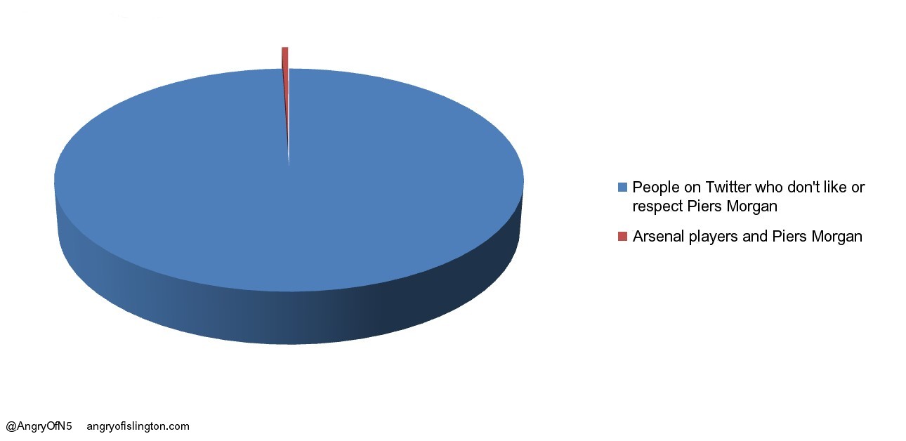 “Arsenal have seen more opposition players carded against them than any other team this season (60 yellows and five reds).” What does that tell us? Sod all again. Do more opposition players get carded against Arsenal because Arsenal provoke them? Or trick them? Or because refs are biased in Arsenal’s favour? Surely not! Like many similar stats, this one can be used to ‘prove’ pretty much anything you like.