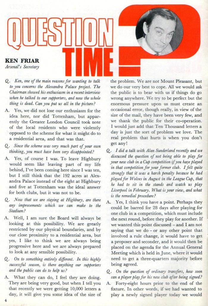 Here’s Ken Friar talking about it in a 1978 Arsenal programme.