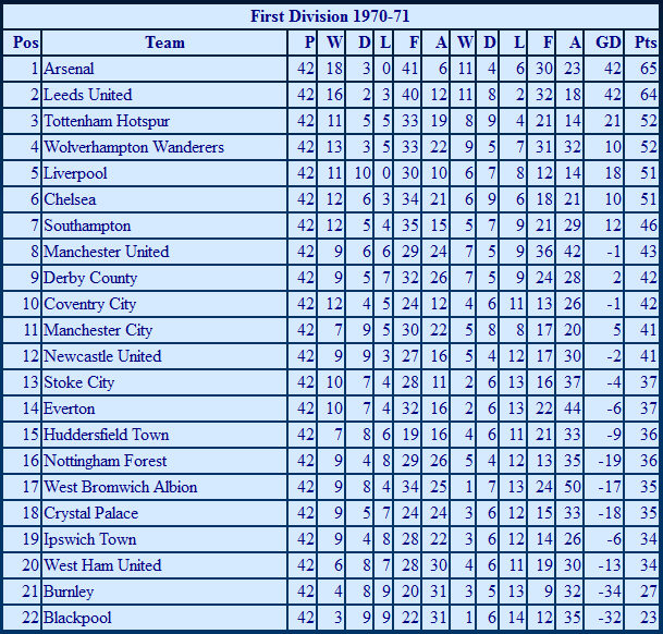 3. 70-71 what a vintage!, That was the year a little boy took his life long allegiance to a club (call me a glory hunter) and went back to school proudly after the summer holidays with his shiny new Arsenal kit and .. wait for it.. matching red and white boots. My Mother either had a sick sense of humour or hoped i was going to be a better footballer than my talent allowed.