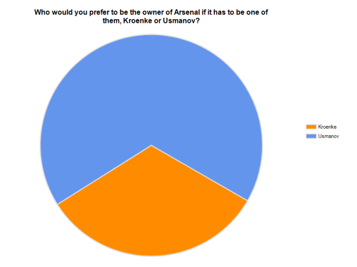 • I personally didn’t vote as I dont think either of them are best for Arsenal however I like the idea of Kroenke keeping Usmanov out. If the bloke really supported the club, he would want what is best for Arsenal and not himself.