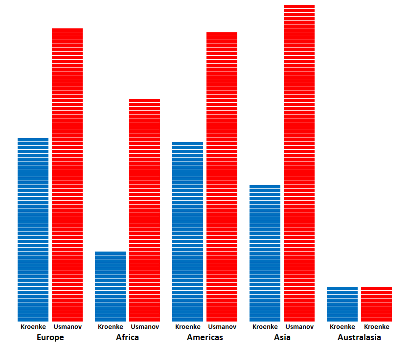 1. I’m frankly amazed by this result. However, your sample might be biased towards people who actually – for some totally unfathomable reason – think Usmanov would do a better job and wanted to use this platform to express their view. The Asian and European results are also interesting – maybe some people think he’s Asian (Uzbek) and others think he’s European (Russian).