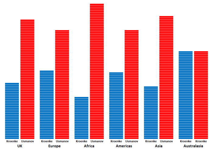 16. Erm, I think the conclusion of your survey should be, at best, that the majority of your readers favours Usmanov. I generally enjoy your articles which seem to be well informed but I am very disappointed that you think that the headline of this article is in anyway appropriate for your ‘survey’.