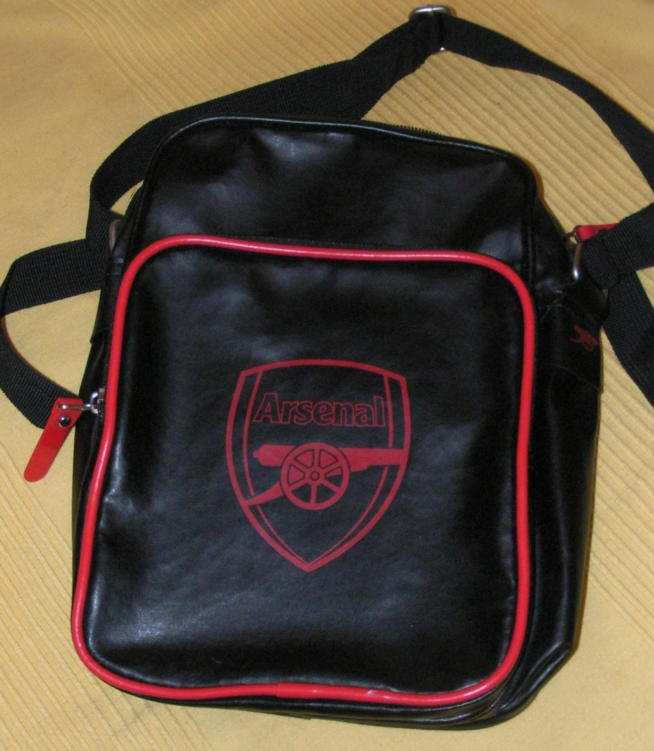 1 black vinyl leather-effect Arsenal man-bag. This is about 15cm x 20cm x 8cm, with the club crest in red and a small cannon on either side. It features no fewer than TWO zips, both of which have an ‘open/close’ function; an outside pocket on the back for important paperwork; and a small inside pocket for putting very important small man stuff into. And by ‘man stuff’, I mean your matching black Amex card, not your – well I’m not even going there. You will be the envy of – well, I’ll tell you who you’ll be the envy of: Pedro out of @LeGrove. He loves a man bag, and if you had this he’d love you. But don’t let that put you off. This is also not available to purchase ANYWHERE IN THE UNIVERSE!How do you get this free stuff, you ask? And why am I giving it away? And where did it come from in the first place?