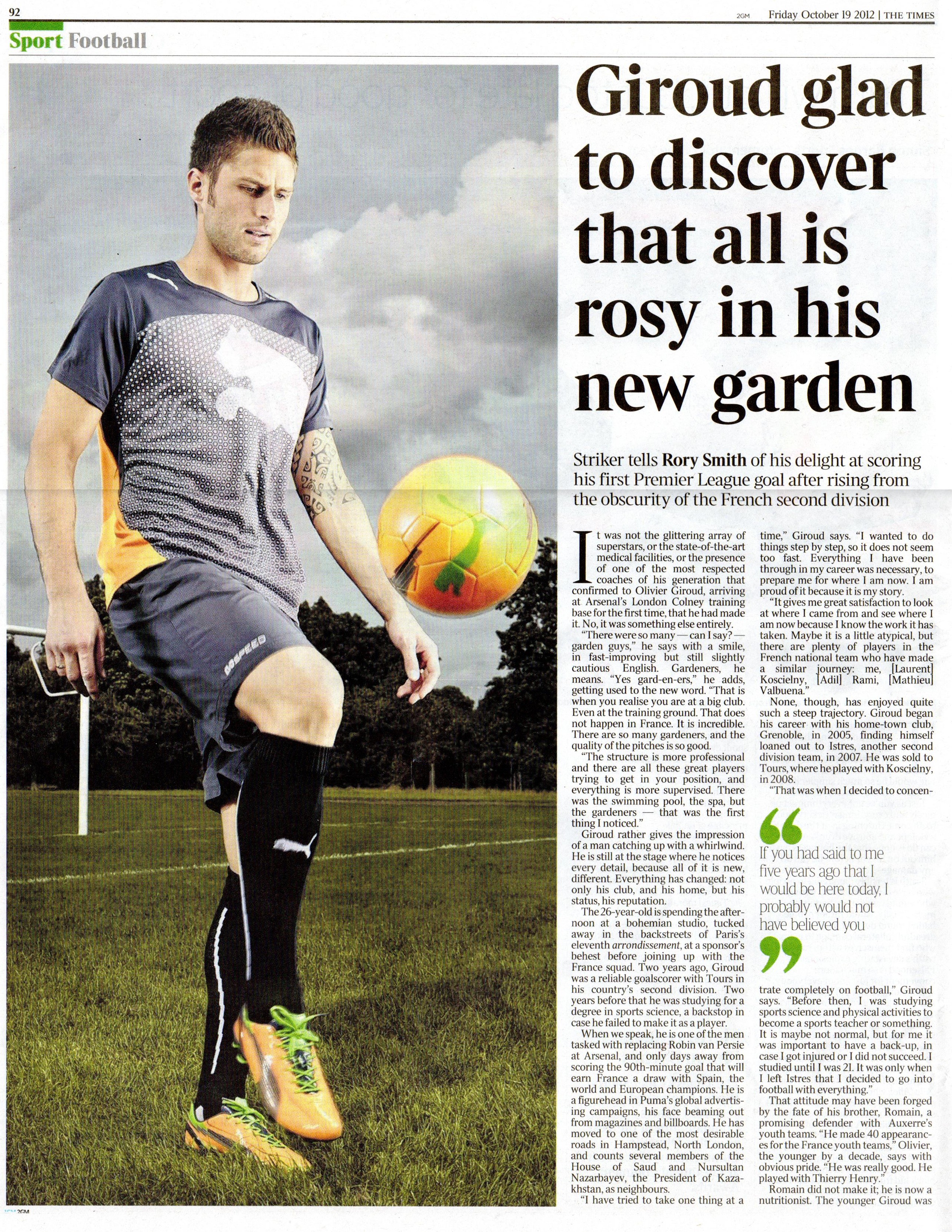 But enough of the depression of recent matches, what does M Giroud have to say for himself in The Times, and what do they conclude about him?