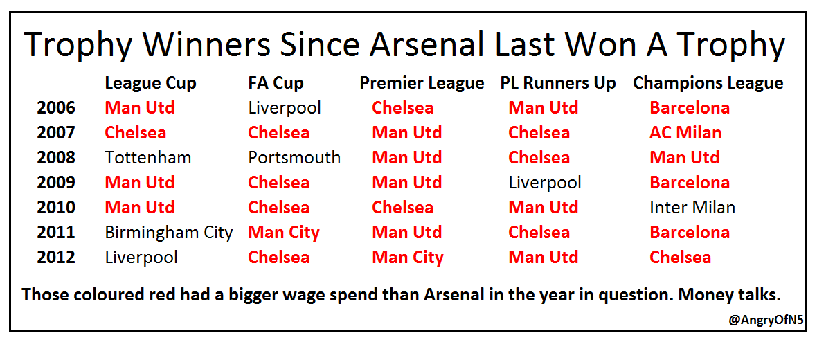 48 thoughts on “Which Teams Have Actually Won Trophies Since Arsenal Did – And Why?