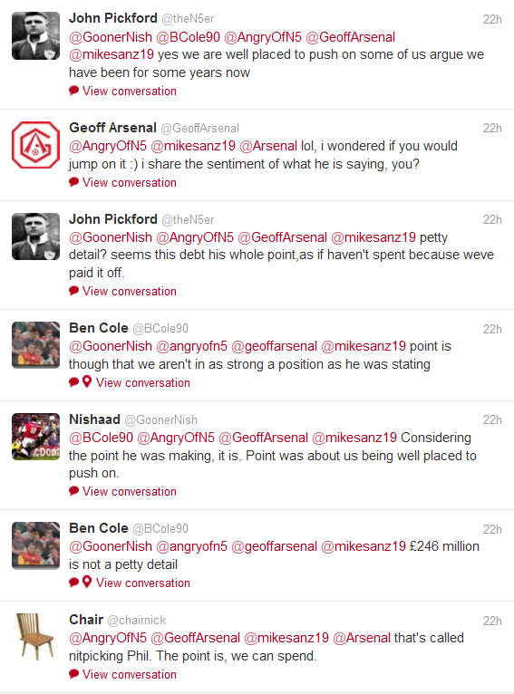 Unconditional Arsène lovers and eternal optimists: “Gary just meant the debt is manageable, don’t be pedantic. He’s just saying we’re in a great position to push on, and the only reason we’ve been stuck in third or fourth is financial constraints on the manager.”