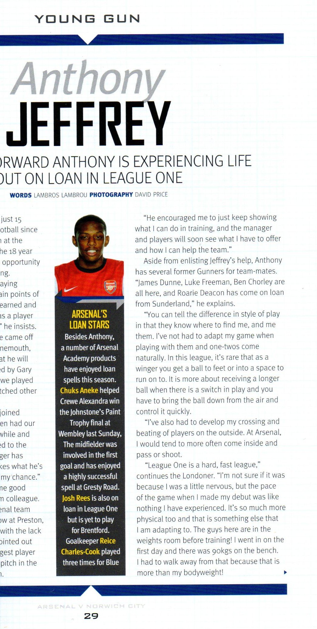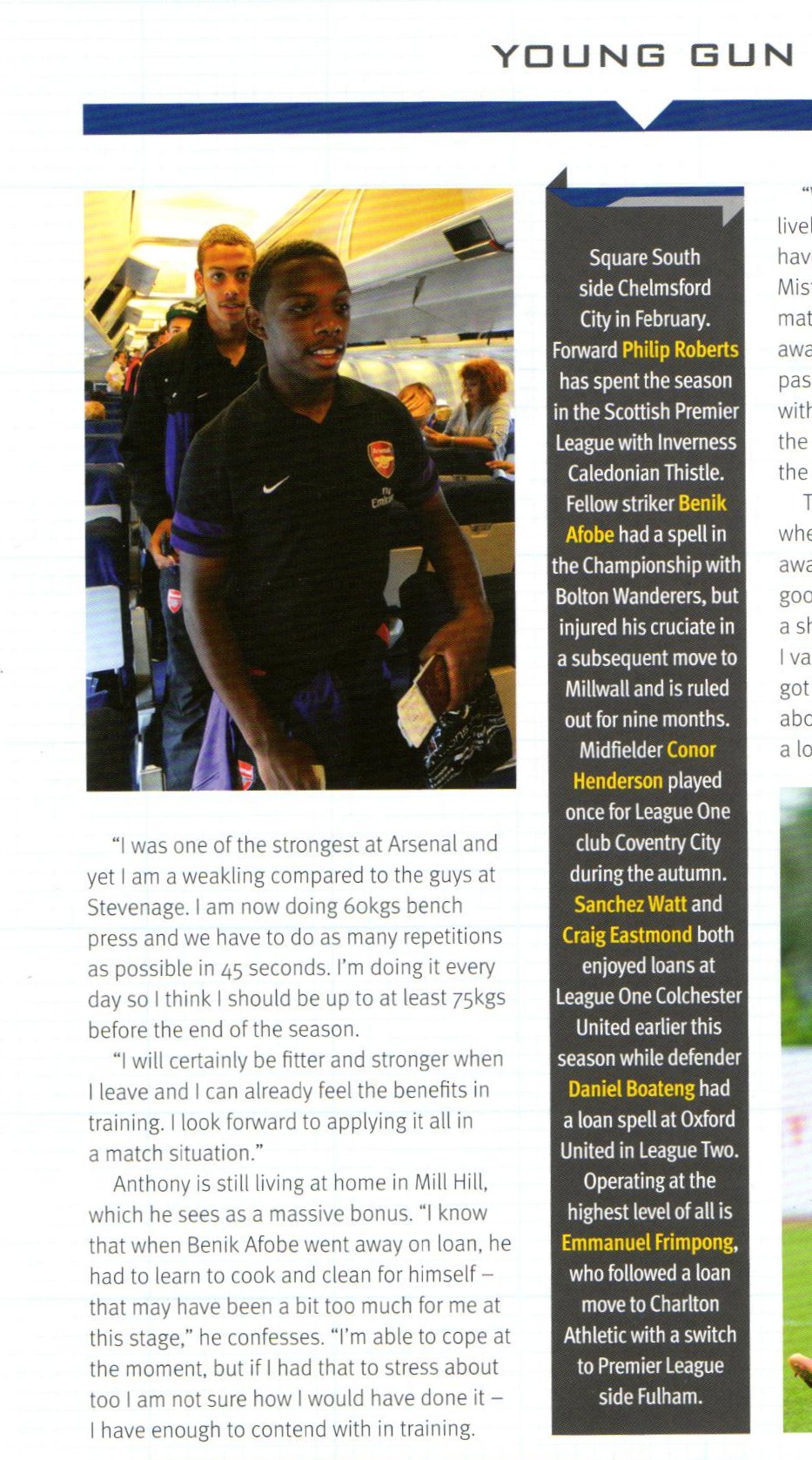 Secondly, and more disturbingly from an Arsenal point of view, there’s a two-page article about Arsenal teenager Anthony Jeffrey, who has been on loan at Stevenage.