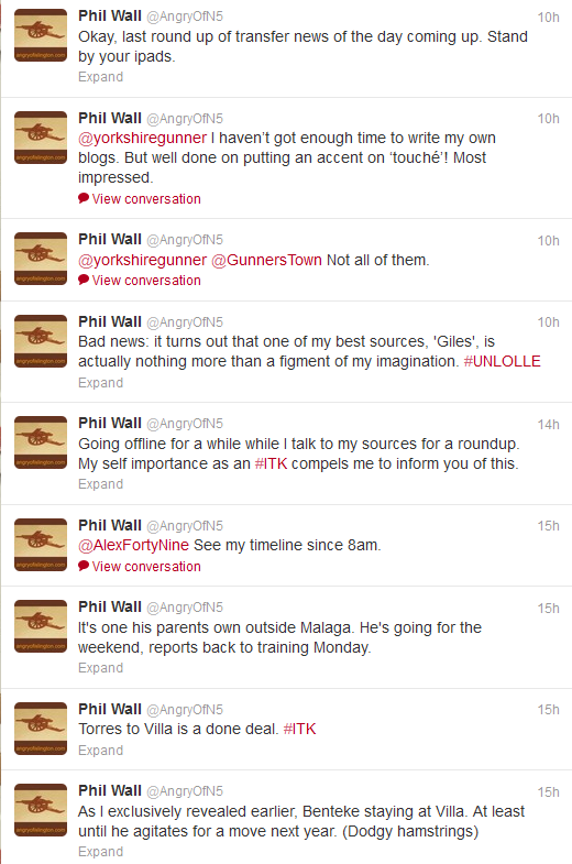 I spent all of Friday making up rumours about transfers and tweeting them. (Sorry about the order – mostly it doesn’t matter.)