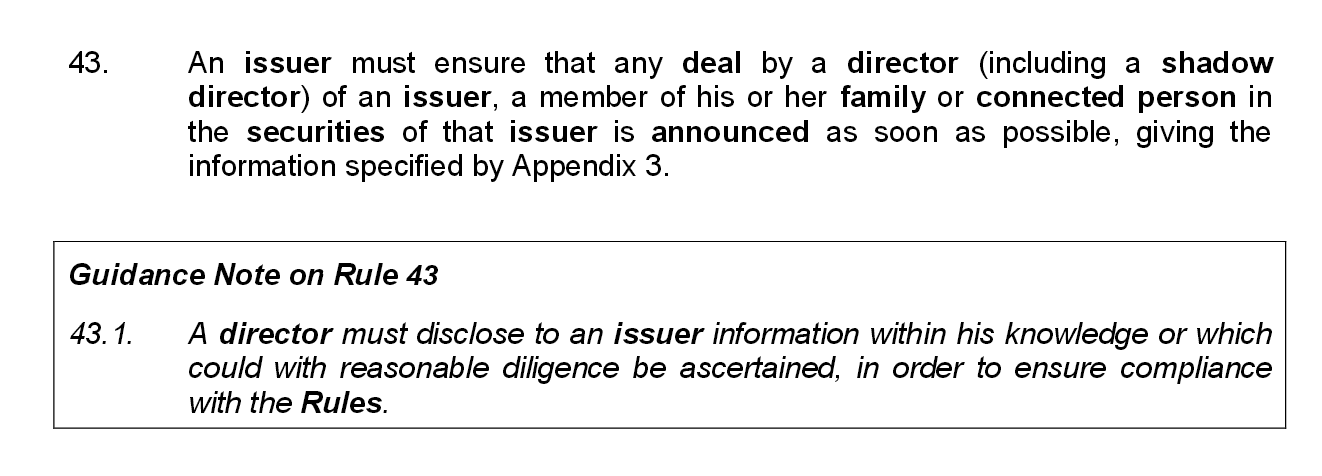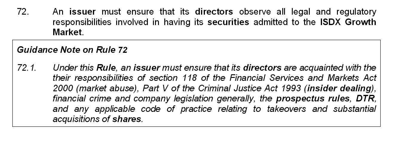 With the aid of my legal team, I’ve now located the ISDX stockmarket rules that Arsenal and their Directors are supposed to follow.