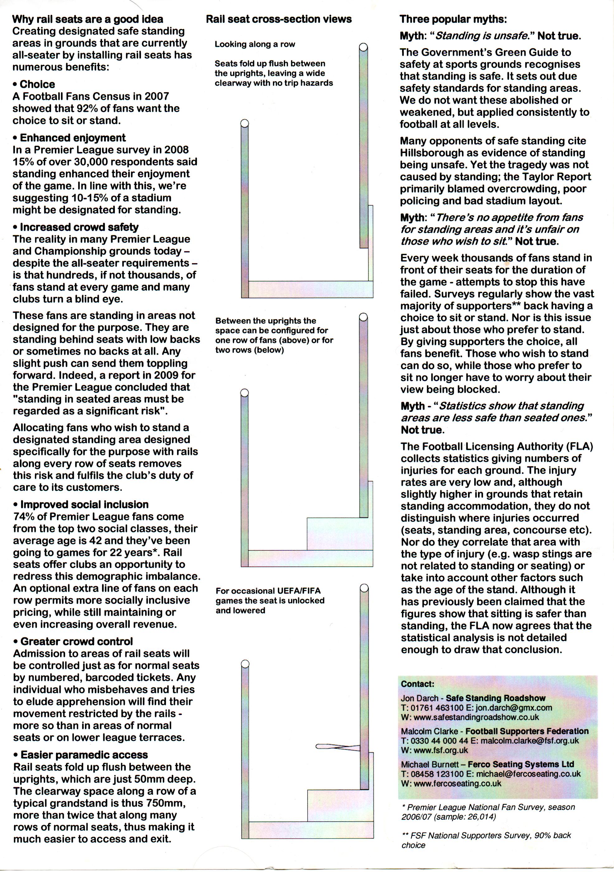 Safe standing areas allow segregation of ‘sitters’ from ‘standers’, so that no one is inconvenienced, either by the stewards or other fans. Each to his own, live and let live. With safe standing, the very young, the elderly, the infirm and the plain lazy can all sit without the need to peer round people standing in front of them, while the standers can go as mental as they want without annoying anyone. It’s so obvious.