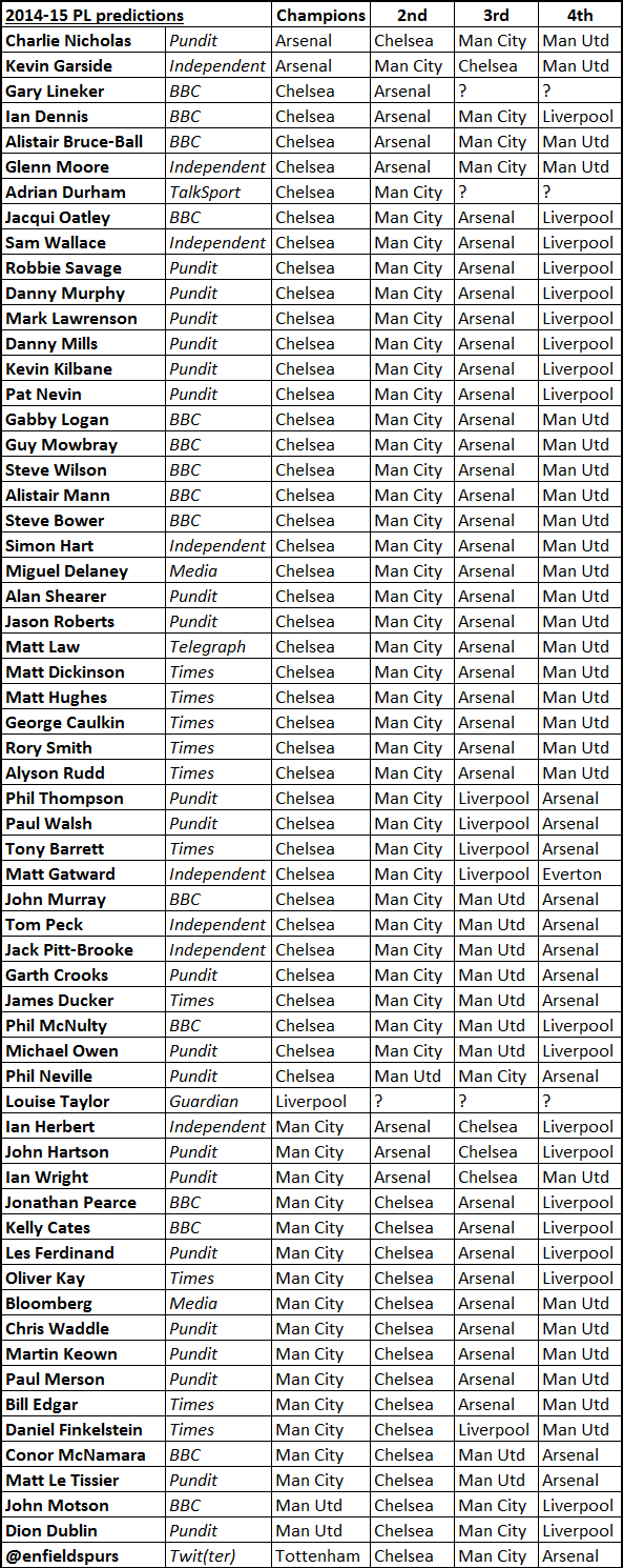 (1)Arsenal(2)mancity(3)man u(4)liverpool