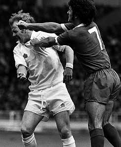 Ronnie Rees (Notts Forest): 6 weeks and £100 fine for three bookings in a season, 1970. As a reminder, bookings in those days were only generally handed out for offences that involved deliberate and extremely violent conduct, such as fist fights and severing body parts. Rees managed a booking in each of October, November and December 1969, the last being against Arsenal on Boxing Day in a 1-1 draw. Rees was quoted in the Nottingham Guardian Journal as saying the punishment “was a bit of a shock at first. I was expecting a month, but six weeks and a fine was a real blow. I think the committee must have taken into consideration my past history other than the three bookings.” Yes, they do tend to consider past convictions when deciding a sentence! A ban of a month was fairly standard for three bookings in a season – it needed to be a repeated pattern to get more. (Most of these details courtesy of Andy Notman, @ClsrThnMst on twitter.)