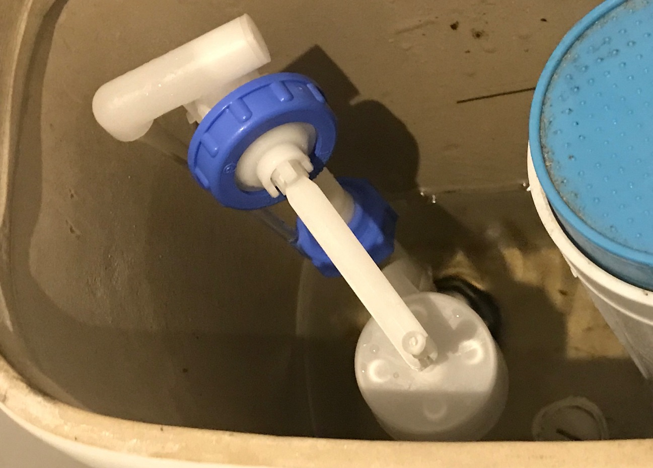 The one I bought was a Torbeck B661AT (Wickes product code 420336 – although it’s branded as Torbeck, it still has Fluidmaster in small print on the back of the packaging – I can’t escape them). I fitted it and turned the water supply on. Success! The cistern refilled in a couple of minutes. A lot slower than at mains pressure, but perfectly usable. You can see in the picture a fairly decent flow of water coming through it. To give the maximum flow, I removed both of the flow inhibitors that come with the valve and also removed the filter, which it tells you never to remove.