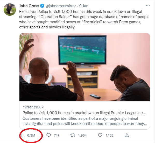 John Cross’s original tweet has apparently been viewed 6.3 million times at time of writing, if Twitter figures are to be believed. They’re probably not, but it’s still going to be a big number, so there is clearly interest. It’s obviously a scare story designed to put people off buying hardware or software that allows access to sports and films you’d normally need to pay for. Watching the Premier League without paying? Tut tut. The police are on their way.